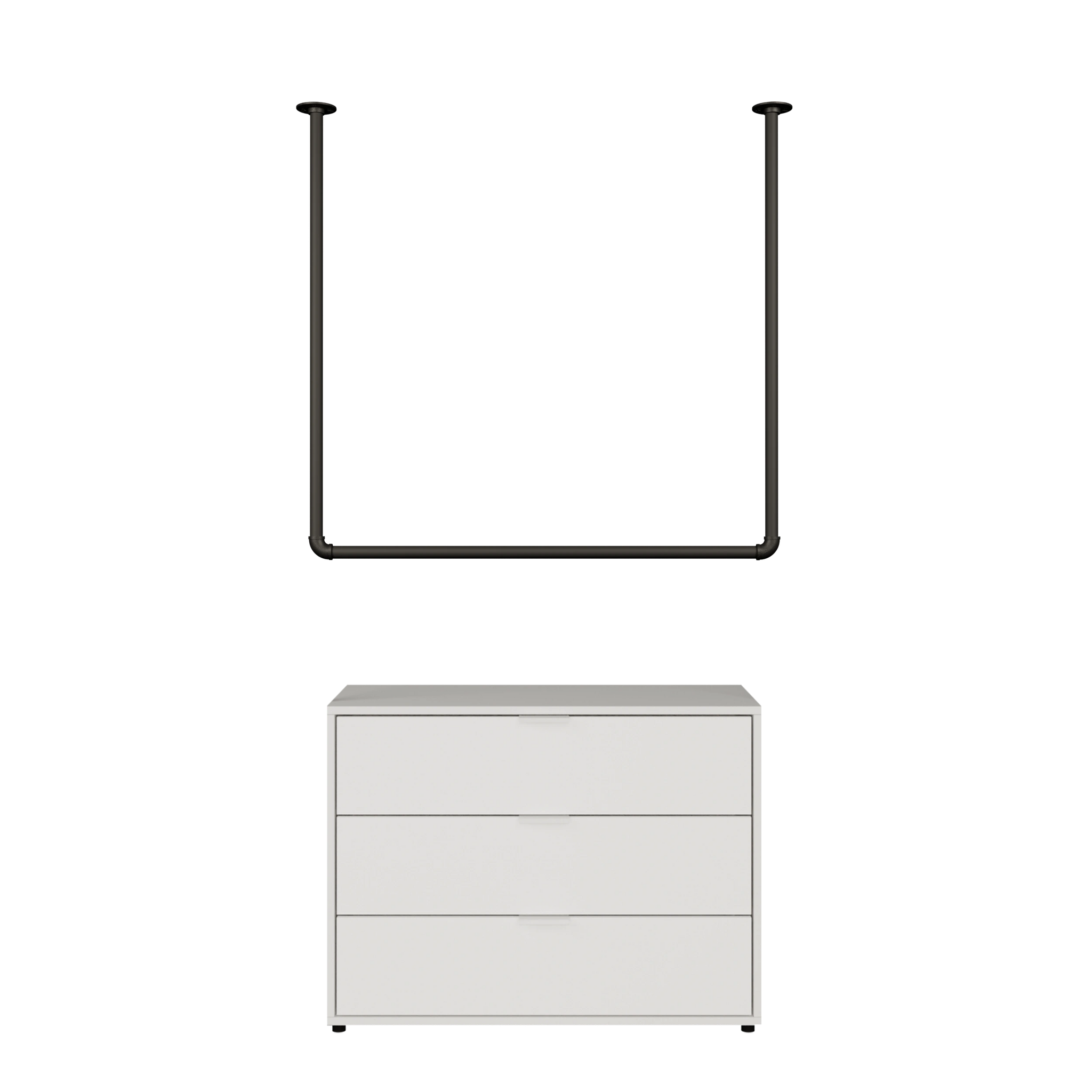 Une tringle à vêtements au plafond s'intègre dans tous les concepts d'habitat modernes et donne à tes pièces une ambiance lumineuse et structurée.